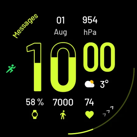 Cannot change 2 of the bottom complications (it's always battery and seconds). Cannot set complication with heart rate from Samsung fit.