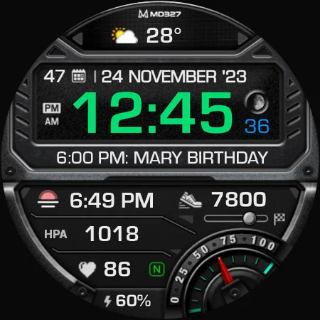 A great watch face which is really suitable for my Galaxy Watch, the customizable option gives it a different look so that i can change and create a combination which differs from the other.. Thank you so much for this amazing watch face.